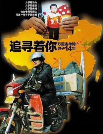 从《亲爱的》到《失孤》,电影大卖的背后隐藏着中国的一处伤疤。中国目前究竟有多少孩子失踪,或被拐卖?又有多少父亲能找回丢失的小孩呢? 郭刚堂是电影《失孤》中刘德华扮演角色“雷泽宽”的人物原型。1997年9月,郭刚堂两岁幼子郭振被抱走。此后十几年,郭刚堂骑摩托车找遍全国除新疆、西藏外的所有省份,行程逾40万公里。他说,只有在路上,才觉得对得起儿子。
